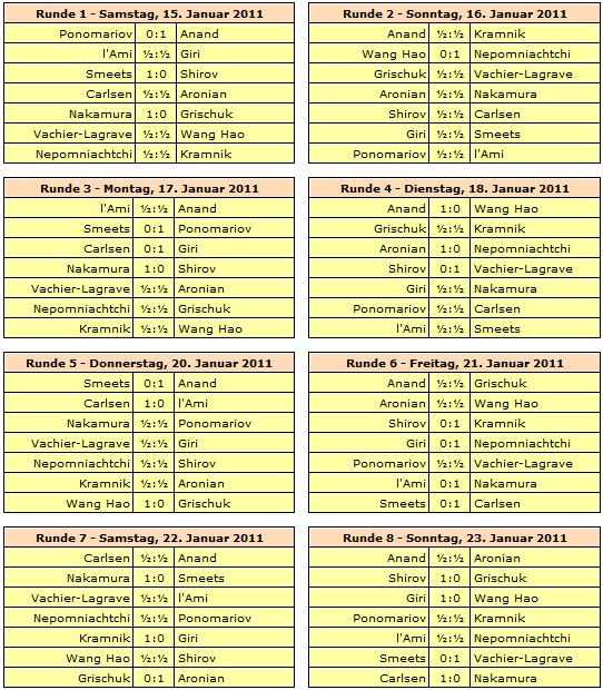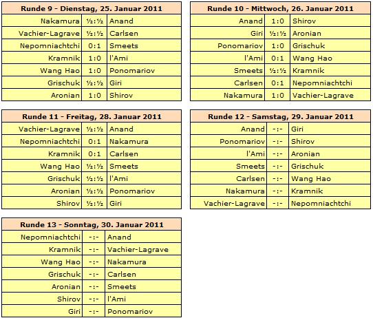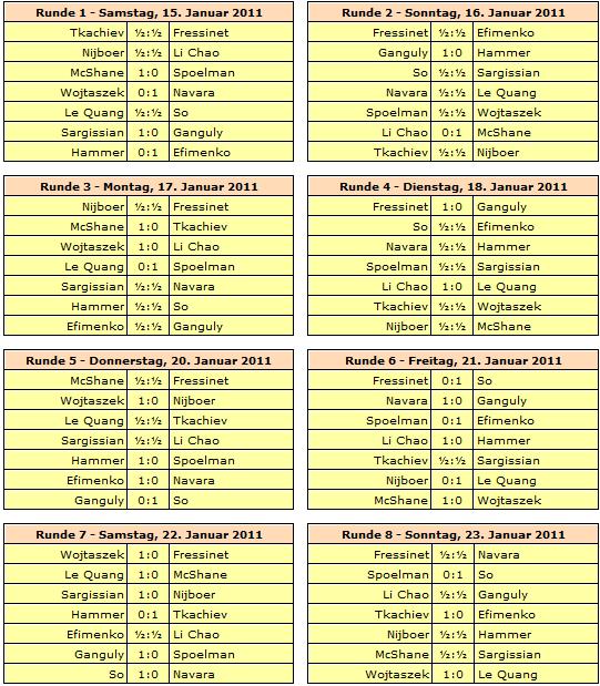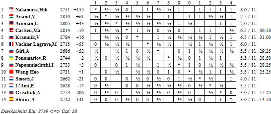 TopTurniere Tata Steel 2011 - Nakamura siegt und führt, Carlsen schlägt Kramnik Hochspannung in B-Gruppe Vocaturo so gut wie durch in C-Gruppe