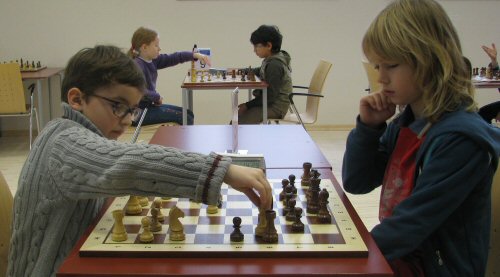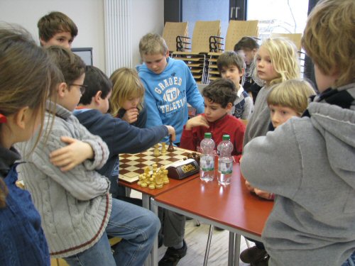 Nach dem Start jeder der 7 Runden kehrt sofort die für das Schachspiel so nötige „Turnierruhe“ ein, noch nicht ganz vergleichbar mit derjenigen auf Weltklasse-Turnieren, für Kinder diesen Alters aber eine lehrreiche Übung. Ein Händedruck eröffnet die sportliche Auseinandersetzung, gefolgt von hoher Konzentration beim Nachdenken über den nächsten Zug, aber auch für die Einhaltung der noch etwas ungeübten Turnierregeln bis zum Ende der Partie, Remis, Patt oder Schachmatt. Nach dem abschließenden Händedruck weicht die große Anspannung dem Nachtrauern über vergebene Chancen oder auch der Freude über den erzielten Sieg. Bis zur Schlussrunde ist dieser Rhythmus so manchem Teilnehmer bereits zu einer gewissen Routine geworden.