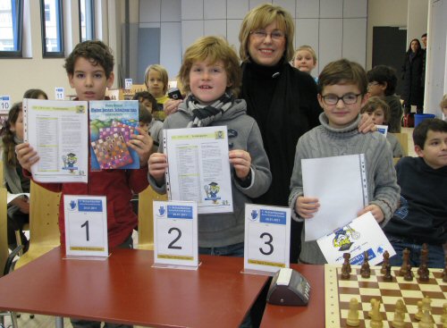 Als Sieger ging am Ende Mete Sinan Georg Klein durchs Ziel, der mit 6,5 Punkten, 6 Siegen und nur einem Unentschieden, ein ausgezeichnetes Ergebnis erzielte. Zweiter wurde Henri Ohl mit 6, gefolgt vom Dritten, Benjamin Schlüter, mit 5 Punkten. Diese drei, sowie weitere 7 Kinder freuen sich nun bereits auf ihr erstes Mannschaftsturnier, das traditionelle Frankfurter „Hibbdebach-Dribbdebach“ -Schulschachturnier der Frankfurter Sparkasse am 3. Februar.
