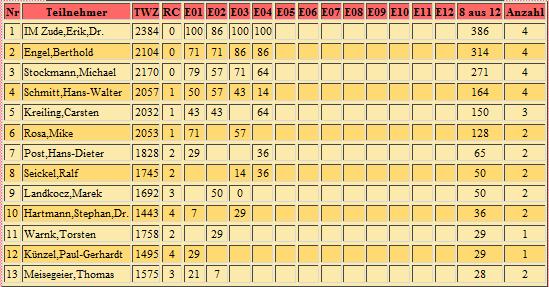 12 Turniere im Chess960; die 8 besten