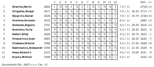 07.02.2011 - Beim Moscow Open 2011 haben Boris Grachev und Alexandra Kosteniuk die beiden Hauptveranstaltungen gewonnen. Ersterer holte bei den Männern alleine 7,5/11, während die kürzlich entthronte Weltmeisterin dank besserer Zweitwertung mit 7/9 siegte. Und schon geht es der russischen Hauptstadt weiter mit hochklassigem Schach. Am Dienstag startet das weltberühmte Aeroflot Open, bei welchem es nicht nur um einen stattlichen Preisfonds geht, sondern auch um einen Platz im GM-Turnier des nächsten Sparkassen Chess-Meetings in Dortmund. In der Setzliste des A-Turniers führt Gata Kamsky vor einem erneut bärenstarken Feld.