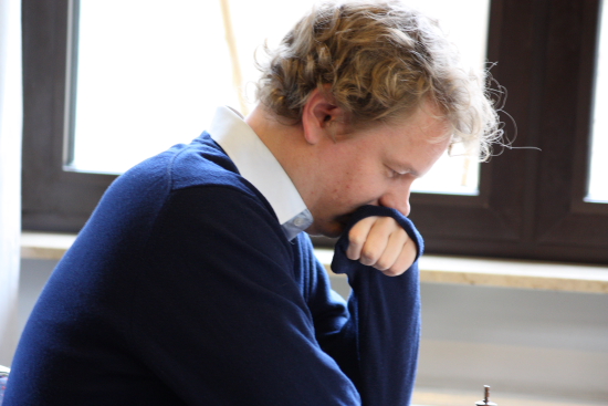 Peter Heine Nielsen sah sich an Brett 2 nach nur 21 Zügen gezwungen, seinem Gegner IM Marcel Tazbir die Punktteilung anzubieten, bevor es - nach seinen eigenen Worten - zu spät wäre...