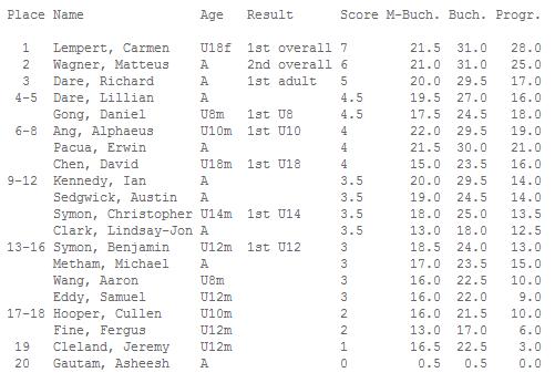 "Angeblich" deshalb, weil beide falsche Namen benutzt haben sollen, um an dem Turnier, welches für Spieler mit einer Rating bis 1700 ausgetragen wurde, teilnehmen zu können. Carmen Lempert und Matteus Wagner aus der Schweiz gewannen souverän und machten abzüglich des Startgeldes zusammen rund 40,- Euro Gewinn. Keine große Sache, mag man sich denken, aber schaut man genauer hin, bleibt bei Manchem doch mehr als nur ein Geschmäckle zurück. Während ChessBase in seinem Bericht noch Vorsicht walten lässt und die wahren Namen von Carmen und Matteus lieber nicht nennt, hat der veranstaltende Hamilton Chess Club in einer sehr sarkastischen Stellungnahme die Namen öffentlich ausgesprochen. Kaum waren passende Beweisfotos erschienen, bestätigten auch Personen, welche den beiden Stocks schon begegnet sind, die Identität. Des Weiteren meldeten sich aus Australien Stimmen zu Wort, die besagen, dass Vater und Tochter dort ähnliche Versuche unternommen haben sollen. Dabei wären sie im Melbourne Chess Club erst auf- und dann rausgeflogen, heißt es.