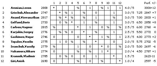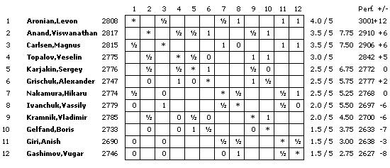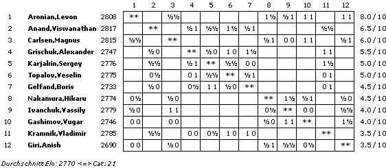 TopTurniere Amber 2011 - Aronian setzt sich ab Carlsen fällt nach kurzer Rochade gegen Ivanchuk zurück