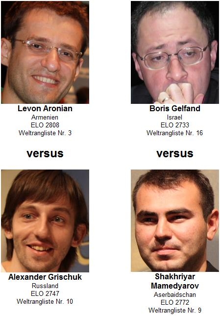 Match #3 bestreiten Levon Aronian und Alexander Grischuk. Der Sieger dieses Duells trifft im zweiten Halbfinale auf den Sieger von Match #4 zwischen Boris Gelfand und Shakhriyar Mamedyarov.