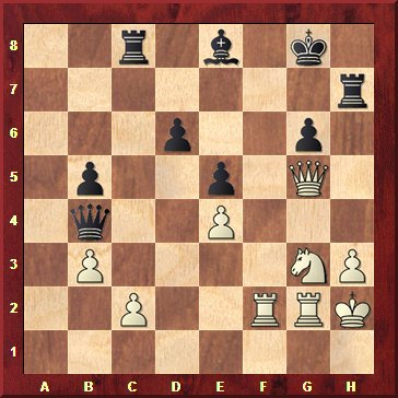 40…Tcc7? Ein Fehler im letzten Zug vor der Zeitkontrolle. Der weiße Angriff wäre aber auch bei bestem Spiel nicht mehr zu parieren gewesen. Weiß drohte mit allen Figuren - Tf6-Sf5 - einzudringen. 41.Dd8 1-0