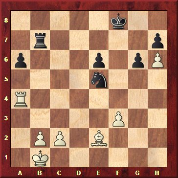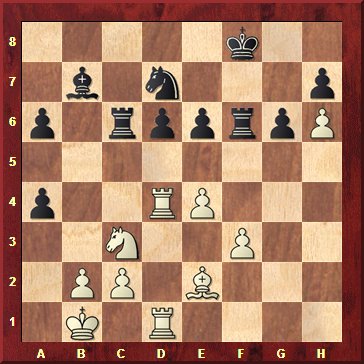 29…g5? Schwarz hätte unbedingt 29…Tb6 probieren sollen. Nach 30.f4 Sf7 31.Lxa6 Sxh6 wäre die Stellung nicht gänzlich klar. Aber nach 30.Lxa6 sollten sich die weißen Damenflügelbauern durchsetzen. 30.Ta5 Sf7 31.Lxa6 Schwarz gab auf, da es gegen das Anrollen der weißen Bauern keine Verteidigung gibt. 1-0