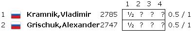 Während Alexander Grischuk bei der Pressekonferenz lieber ganz woanders gewesen wäre, blühte Vladimir Kramnik regelrecht auf und hatte kein Problem mit dem Kurzremis