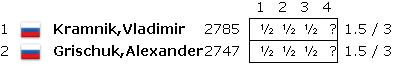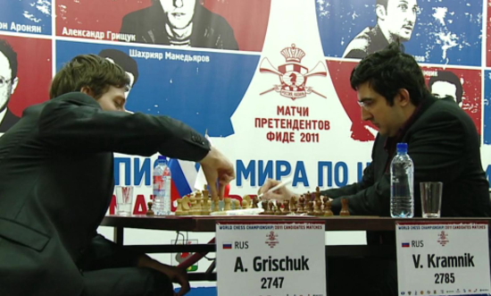 Erneut begnügte sich Alexander Grischuk mit Weiß gegen Vladimir Kramnik mit einem schnellen Remis