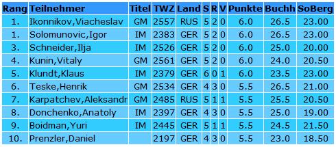 Nachrichten Ikonnikov Wertungssieger bei XIV. Karl-Mala-Gedenkturnier Gleich fünf Spieler punktgleich an der Spitze