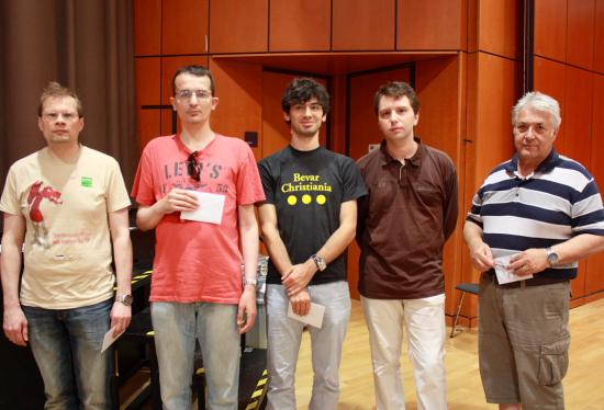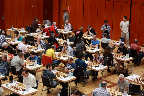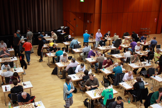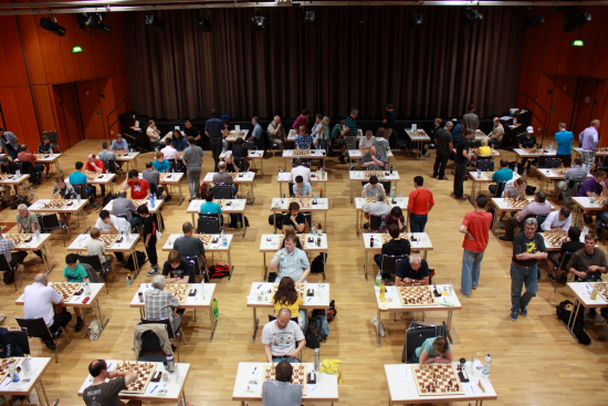 13.07.2011 - Am vergangenen Sonntag endete in Frankfurt am Main das XIV. Karl-Mala-Gedenkturnier (KMG). Vier Tage lang hatten 250 Teilnehmer im großen Saal des Bürgerhauses Griesheim um Punkte, DWZ und ELO sowie natürlich um die zahlreichen Preise gerungen. Letztlich kamen gleich fünf Titelträger mit 6 aus 7 ins Ziel, von denen GM Viacheslav Ikonnikov ganz knapp die beste Wertung vorzuweisen hatte und bei der abschließenden Siegerehrung als Sieger präsentiert wurde. Das Gefühl, das KMG zu gewinnen kennt der Russe, denn bereits 2009 konnte er das größte Open der Mainmetropole für sich entscheiden. Zweiter wurde sein Heidelberger Mannschaftskollege IM Igor Solomunovic vor dem Drittplatzierten IM Ilja Schneider. Es folgt ein ausführlicher Bilderbogen, während Sie die Ergebnisse, Tabelle und die inoffizielle DWZ- und ELO-Auswertung auf der Turnierseite finden.