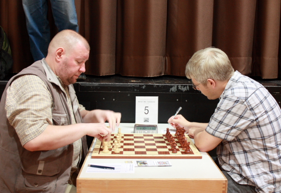 In der letzten Runde lautete das Spitzenduell Viacheslav Ikonnikov gegen Vitaly Kunin. Was hier schon sehr harmonisch wirkte...