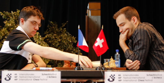 20.07.2011 - Im Spitzenduell der dritten Runde des ACCENTUS-Grandmaster Tournament in Biel traf der führende Magnus Carlsen mit Schwarz auf Verfolger Alexander Morozevich und das erhofft spannende Duell. In einer Stellung mit heterogenen Rochaden sah es lange so aus, als wäre der Norweger früher am Drücker, aber in komplizierter Stellung konnte er den Sack nicht zumachen und musste miterleben, wie sich Moro findig befreite und verdient im Remishafen anlegte. Zuvor hatten sich schon Yannick Pelletier und Maxime Vachier-Lagrave friedlich getrennt, wobei dem Friedensschluss ein heftiges Handgemenge vorangegangen war. Mit einem riskanten Qualitätsopfer brachte sich der Franzose in eine bedenkliche Lage, welche er aber letztlich mit einer schönen Dauerschachkombination entschärfte. Somit lagen alle Hoffnungen auf etwas Blut in der Begegnung zwischen Alexei Shirov und Fabiano Caruana. Der Italiener opferte für einen starken Freibauer seinen g-Bauer, fand danach allerdings nicht den rechten Weg und verlor auch noch sein Prachtstück. Mit nunmehr zwei Mehrbauern ließ Shirov nichts mehr anbrennen und gewann souverän. Am Donnerstag haben die Spieler ihren ersten Ruhetag.