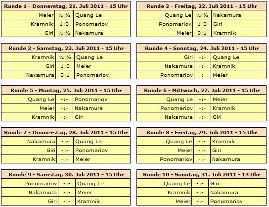 TopTurniere Dortmund 2011 - Ponomariov zerlegt Nakamura... ...Kramnik bleibt vorn und Meier verliert erneut