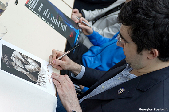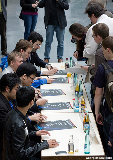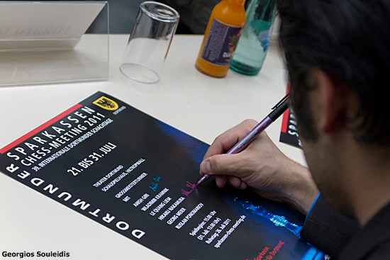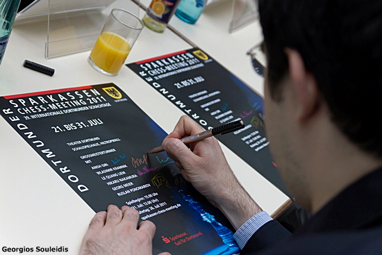 Jeder hatte seine eigene Farbe - Anish Giri unterschrieb mit Blau...