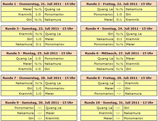 TopTurniere Dortmund 2011 - Kramnik gnadenlos gut Giri schlägt Ponomariov, Nakamura und Quang Le remisieren