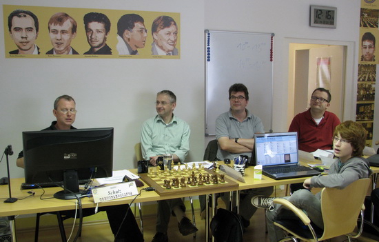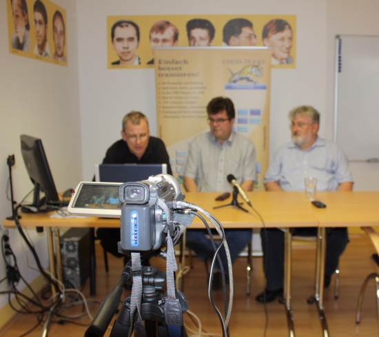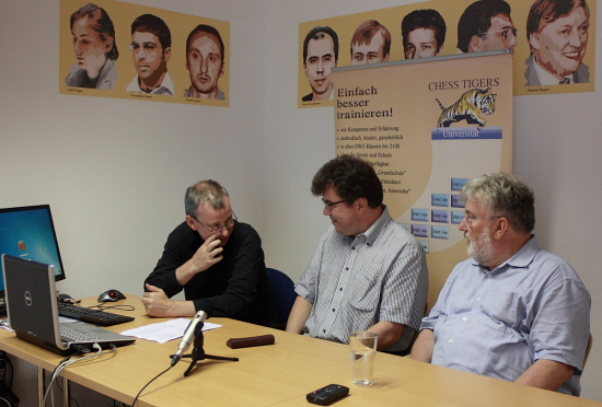 Bevor das eigentliche Seminar begann, folgte eine Premiere im Internet-TV. Immer freitags von 17 bis 18 Uhr können User des Fritzservers auf selbigem einer interaktiven Sendung von TV ChessBase folgen, in welcher das aktuelle Tagesgeschehen der Schachwelt aufbereitet wird. Am vergangenen Freitag packte Redakteur und Moderator André Schulz die dafür nötige Kamera nebst Equipment ein, um live aus dem Chess Tigers Training Center in Bad Soden zu senden. So kam es, dass Hausherr Hans-Walter Schmitt zusammen mit GM Klaus Bischoff bei Schulz im eigenen Hause zu Gast waren. Natürlich musste neben weiteren Themen auch das Ende der Chess Classic Mainz nochmals besprochen werden. Organisator Schmitt stillte gewohnt offen den Bedarf an Informationen, den einige User hatten, und legte dar, warum die Chess Classic nicht mehr finanzierbar war. Aber es gab auch launigere Themen wie zum Beispiel die Fortschritte im Chess Tigers Training Center und die Tatsache, dass dessen Schulschachprogramm in der Rhein-Main-Region erste Erfolge zeitigt und ständig erweitert wird. Kein Grund also, Trübsal zu blasen, wobei die Chess Tigers in diesen Tagen durchaus mal gedanklich bei ihrem einstigen Event sind, denn aktuell befinden wir uns exakt in der Zeit des Jahres, in welcher die Chess Classic stattgefunden hätte...