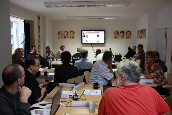 Zum Auftakt des Seminars ließ André Schulz jeden Teilnehmer kurz darlegen, wie geübt dieser im Umgang mit dem PC und den ChessBase-Produkten ist und passte in der Folge sein Anfangstempo entsprechend an. Zunächst gab es einen Crash-Kurs zur Handhabe des Betriebssystems Windows 7 und zur Installation und Aktivierung der ChessBase-Softwares. Danach tauchte Schulz mit seinem Zuhörern in die Welt von Fritz 12 ein und erklärte ausführlich die Funktionen der Oberfläche und den richtigen Umgang damit. Zum Ende des ersten Tages folgte dann der Sprung zum Datenbankprogramm ChessBase 11, zu welchem Schulz als Vorbereitung auf den zweiten Tag vorab erstes Basiswissen vermittelte. Manch ein Seminarteilnehmer nutzte gleich die Gelegenheit und erwarb an Ort und Stelle die neuesten Programme seiner Wahl, um sie für den nächsten Tag schon auf dem Laptop zu haben.