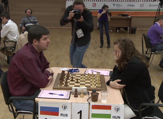 10.09.2011 - Peter Svidler und Ruslan Ponomariov dürfen sich nach dem zweiten Tag des Viertelfinales beim FIDE World Cup 2011 in Khanty-Mansiysk gleich doppelt freuen. Ersterer konnte Judit Polgar besiegen und Zweiterer tat es ihm gegen Vugar Gashimov mit virtuoser Endspielkunst gleich. Somit stehen beide im Halbfinale und wissen bereits, gegen wen sie spielen - nämlich gegeneinander! In den morgigen Tiebreak müssen dagegen die Duelle Vassily Ivanchuk gegen Teimour Radjabov und Alexander Grischuk gegen David Navara über das zweite Halbfinale entscheiden. Ivanchuk hatte gestern die Führung übernommen, doch Radjabov konnte heute zurückschlagen. Derweil trennten sich Grischuk und Navara beide Male unentschieden, wobei der Tscheche heute mit Mehrbauer eine gute Chance auf den direkten Einzug ins Halbfinale verstreichen ließ.