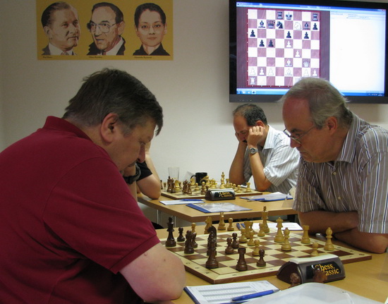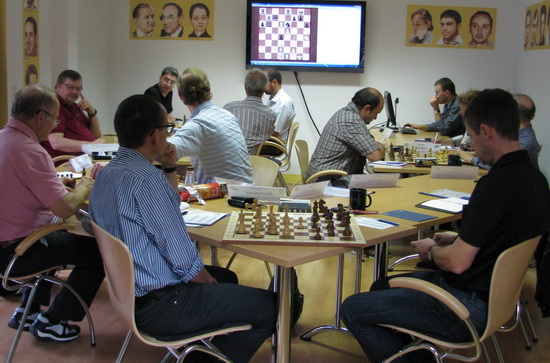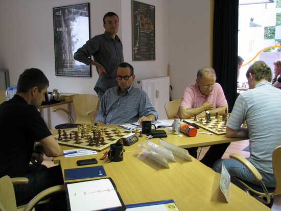 Zur Entspannung hat so mancher die Pause genutzt, um im Nebenraum GM Klaus Bischoff's Kommentaren