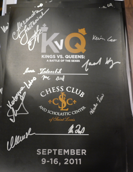 12.09.2011 - Zur Eröffnung der World Chess Hall of Fame in Saint Louis haben sich die Verantwortlichen mächtig ins Zeug gelegt. Eine große Eröffnungsparty mit zahlreichen Gästen aus der ganzen Welt machte den Anfang und wird in diesen Tagen von einem besonderen Turnier wortwörtlich gekrönt. Denn es treten fünf "Kings" gegen fünf "Queens" sowohl im traditionellen Schnellschach als auch im modernen Chess960 an. Nach zwei von fünf Runden haben die Männer mit 12:8 die Nase vorn. Beide Teams weisen einen ELO-Schnitt von fast 2480 auf. Live per Video kommentiert wird das Geschehen auf und neben den Brettern von GM Yasser Seirawan und WGM Jennifer Shahade in der gewohnt lockeren und unterhaltsamen Weise, wie es die Amerikaner (und nicht nur die) nunmal lieben. Mittendrin ist auch Chess Tiger Eric van Reem mit seiner Kamera und präsentiert in der Folge ein paar exklusive Bilder, welche wir noch mit einigen Screenshots der Videoübertragungen ergänzt haben. Täglicher Rundenstart ist übrigens um 22:00 Uhr unserer Zeit. Erst folgt eine Runde Chess960, dann normales Schnellschach.