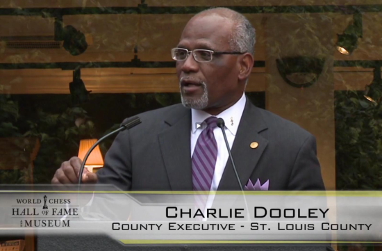 Jeanne und Rex Sinquefield (Mitte) sind die Gründer des Saint Louis Chess Club and Scholastic Centers, Mäzene der World Chess Hall of Fame und durften selbige feierlich eröffnen