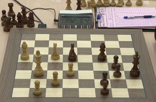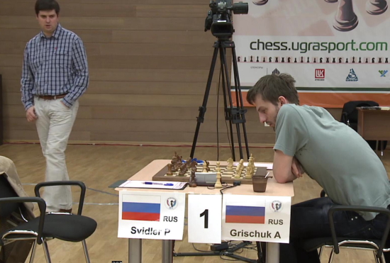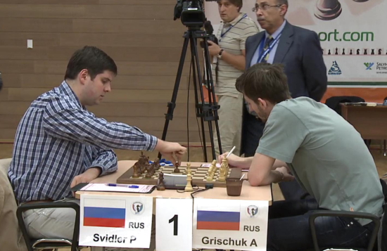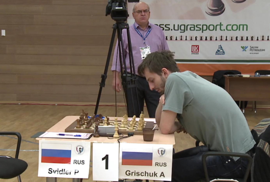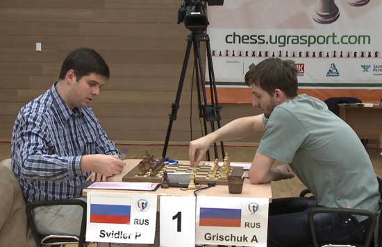 18.09.2011 - Die dritte Partie im Finale des World Cups brachte keine Vorentscheidung, aber nach dem erneuten Remis bleibt die Erkenntnis, dass Alexander Grischuk sowohl wörtlich als auch bildlich die Zeit weg läuft. Erstens muss er morgen unbedingt mit Schwarz gegen Peter Svidler gewinnen und zweitens besser mit seiner Bedenkzeit umgehen als zuletzt! Auch heute geriet Grischuk schon aus der Eröffnung in schreckliche Zeitnot und lebte spätestens ab dem 25. Zug nur noch von den 30 Sekunden Bonus pro Zug. Im Bronzeduell trennten sich Vassily Ivanchuk und Ruslan Ponomariov nach spannendem Verlauf ebenfalls unentschieden. Dabei kam Letzterer dem Ausgleich ziemlich nahe, aber Ivanchuk konnte letztlich das Endspiel mit Minusbauer in den Remishafen schleppen. Somit fällt in beiden Duellen die Entscheidung in der 4. Partie oder eben erst am Dienstag im Tiebreak.