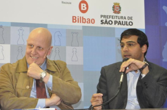 Leider verrät die Turnierseite nicht, wer der Herr links neben Gilberto Kassab (Bürgermeister São Paulo) ist, aber die Sponsoren-Vermutung liegt nahe. Jedenfalls posierte er sowohl bei Hikaru Nakamura gegen Viswanathan Anand...