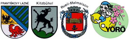 Die Partnerstädte von Bad Soden am Taunus v.l.n.r.: Franzensbad - Tschechien, Kitzbühel - Österreich, Rueil Malmaison - Frankreich und Yoro-cho - Japan