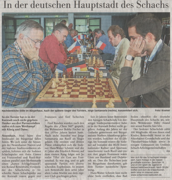 Nachrichten In der deutschen Hauptstadt des Schachs Internationales Chess960-Turnierchen sorgte für Aufregung in Bad Soden am Taunus