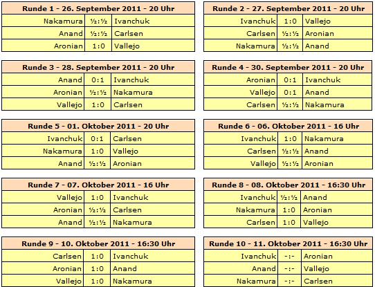 TopTurniere Chess Masters Final - Carlsen zerlegt Ivanchuk Aronian besiegt den Weltmeister und Nakamura verliert auf Zeit gegen Vallejo