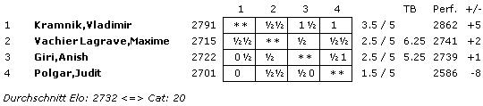 TopTurniere Kramnik vorzeitig Sieger in Hoogeveen und virtuell über 2800 Giri auf Platz 2 nach Sieg gegen Polgar