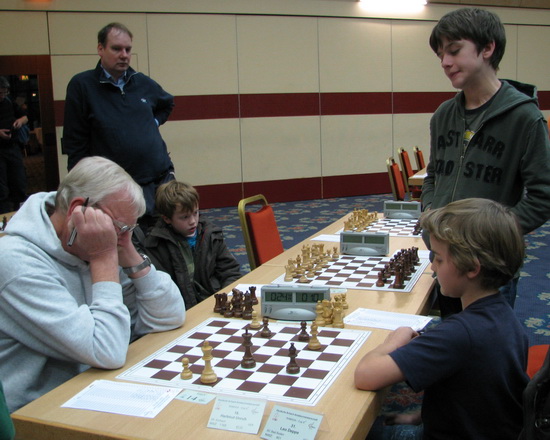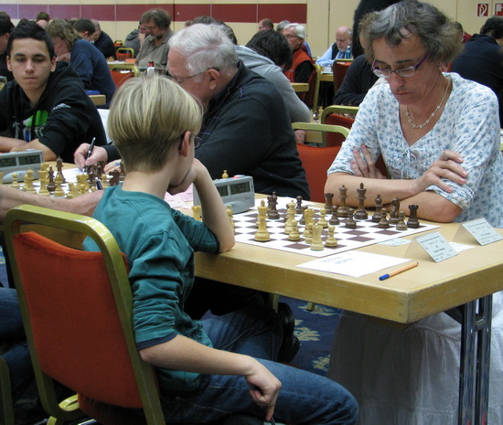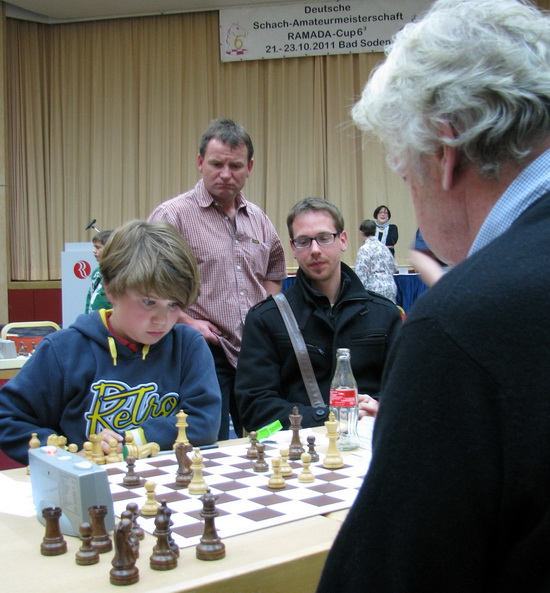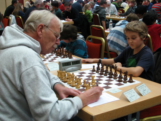 Dahinter: Junge gegen Senior: Leo Max Deppe - Hartmut Unruh remis