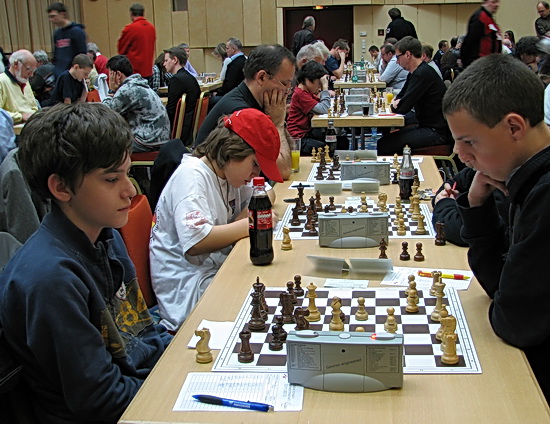 23.10.2011 - Maximillian Vaintroub vom SK Mannheim-Lindenhof 1865 zeigte sich in der Klasse "F" mit 44 Teilhehmern als unschlagbar. Im Leistungsbereich unter TWZ 1300 gewann er alle Spiele. Mit 5 Punkten aus 5 Partien = 100% gelang dem 9-jährigen hochtalentierten Badener mit russischen Wurzeln der perfekte Score. In den Klassen A, B, C, D und E konnte keiner der anderen 238 Teilnehmer bei der 1.Qualifikation zur Deutschen Schach-Amateurmeisterschaft 2011/2012 dieses Traumergebnis erreichen. Russische Wurzeln mütterlicherseits weist auch der amtierende U12-Blitzmeister des Bezirk 7, Leo Max Deppe auf, der mit seinem Trainingspartner Ruben Rittberger aus der Chess Tigers GS3-Trainingsgruppe, zum ersten Mal bei einem "echten" Schachturnier an den Start ging, allerdings erreichte er nur halb so viele Punkte. Die Mannschaftskollegen aus der Bad Sodener "Neunten" wollen ihr Trainingspensum nun intensivieren und nächstes Jahr auch "ganz oben" stehen, - aber zumindest unter die ersten "Sechs" kommen.