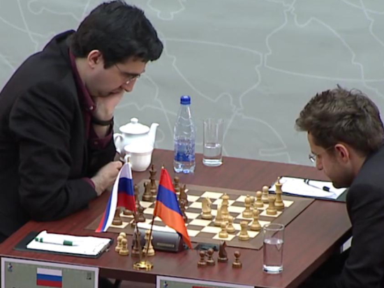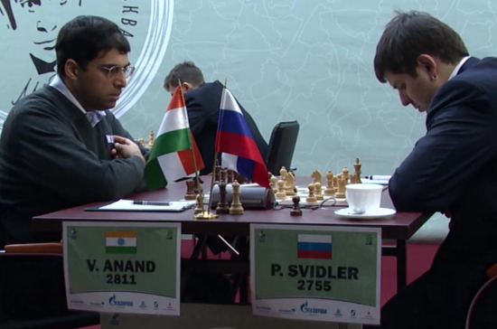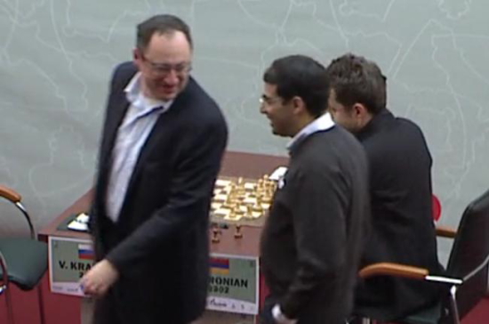 17.11.2011 - In der heutigen zweiten Runde des Tal Memorials konnte Magnus Carlsen die geteilte Tabellenführung erobern. In einer packenden Partie wehrte er zunächst den Königsangriff von Boris Gelfand ab und konterte diesen dann in Zeitnot zum einzigen Sieg der Runde aus. Alle anderen Begegnungen endeten mehr oder weniger spannend im Remishafen, wobei Ian Nepomniachtchi im Spitzenduell gegen Vassily Ivanchuk am längsten um den halben Punkt bangen musste. Somit führen nun Carlsen, Ivanchuk und Nepomniachtchi mit 1,5 aus 2. Morgen um 12:00 Uhr steht die dritte Runde an. Auch dieses Turnier wird übrigens auf der Webseite des Russischen Schachverbands mit einem HD-Videostream live übertragen.