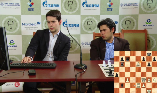 19.11.2011 - Zum ersten Mal wurde beim diesjährigen Tal Memorial eine Runde mit fünf Unentschieden beendet. Das lag keineswegs an einer etwaigen Friedfertigkeit der Teilnehmer. Ganz im Gegenteil, in jeder der fünf Begegnungen wurde bis zum letzten Blutstropfen gekämpft, aber die Attackierten verteidigten sich teils bravourös. Somit gibt es natürlich auch keine Veränderung in der Gesamtwertung. Es führen weiterhin Aronian, Carlsen, Nempomniachtchi und Karjakin mit einem halben Punkt Vorsprung auf Anand, Ivanchuk und Svidler. Morgen steht die fünfte Runde an. Danach dürfen sich die Spieler am Montag am Ruhetag erholen.