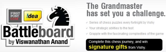 Network18’s Firstpost.com, India’s first exclusive online news and views website launched an online chess championship for its readers today. This fortnightly event will see Vishwanathan Anand share some of his real-life chessboard experiences with online participants as a part of ‘Firstpost Battleboard.’