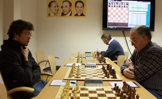 11.12.2011 - Am Montag steht die sechste von sieben Runden bei der 2. Frankfurter Chess960 Stadtmeisterschaft an. Nicht nur um den ersten Rang, auch um die folgenden Plätze und Ratingpreise wird nun heftiger denn je gerungen. Okay, in Sachen Turniersieg scheint die Messe so gut wie gelesen, aber noch ist IM Erik Zude mit seinen 5/5 mathematisch nicht auf der sicheren Seite. Verfolger FM Behrang Sadeghi liegt zwar einen vollen Zähler zurück, aber im direkten Aufeinandertreffen könnte er in Runde 6 mit einem Sieg den entscheidenden Big Point schaffen und gleichziehen. Es folgen die Ergebnisse der vierten und fünften Runde und die Paarungen der sechsten Runde nebst Tabelle, Partien und zahlreichen Bildern.
