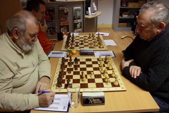 15.12.2011 - Eine Runde steht bei der 2. Frankfurter Chess960 Stadtmeisterschaft zwar noch aus, aber der Sieger steht bereits fest. Zu stark präsentierte sich IM Erik Zude und gewann bisher alle seine Partien und führt nun uneinholbar mit 1,5 Punkten Vorsprung. Zum Abschluss wird er noch auf Ferdinand Niebling treffen, welcher ebenfalls vorzeitig seinen Senioren-Titel aus dem Vorjahr verteidigt hat. Zwar könnte Simon Kletzerman noch nach Punkten gleichziehen, aber nach Zweitwertung wird er den Ehren-Tiger nicht mehr einholen können, obwohl er im direkten Duell in Runde 1 gegen Niebling gewann. Der Kampf um die bezahlten Plätze und den Sieg in den Ratingklassen ist noch völlig offen und verspricht eine spannende Schlussrunde am kommenden Montag. Es folgen die Ergebnisse der sechsten Runde sowie die Paarungen der letzten Runde nebst Tabelle, Partien und Bildern.