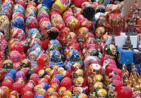 Die aus Holz gefertigte und bunt bemalte, ineinander schachtelbare, eiförmige russische Puppe Matrjoschka "Matroschka", wird irrtümlicherweise auch öfters als Babuschka bezeichnet. Sie fehlt auf keinem Touristikplatz.