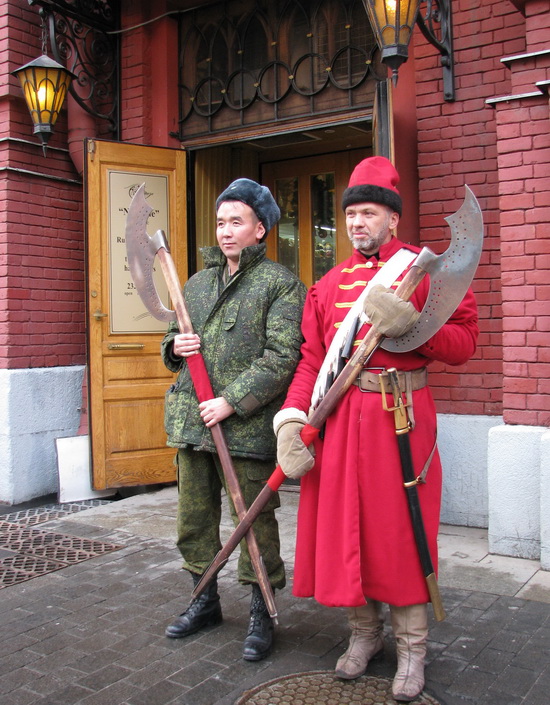 Blickpunkt und touristisch gern zur Schau gestellte Kampfeshaltung vor einem historischen Gebäude auf dem rotem Platz. Jede Ähnlichkeit mit Anand und Gelfand wird ausgeschlossen.