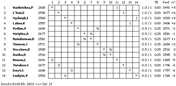 Die Bedenkzeit in allen drei Turnieren ist 100 Minuten für 40 Züge, 50 Minuten für weitere 20 Züge und 15 Minuten für den Rest der Partie. Zusätzlich gibt es ab dem ersten Zug 30 Sekunden Bonus pro ausgeführten Zug.