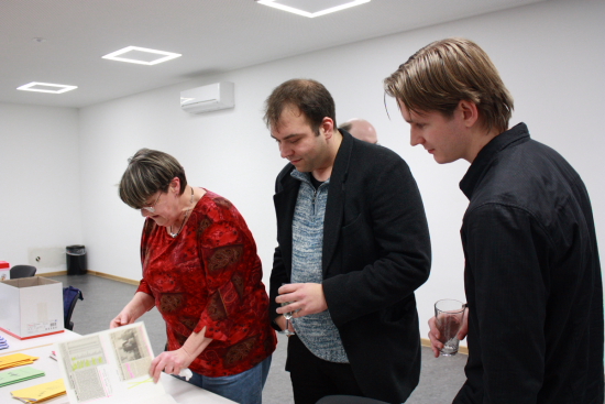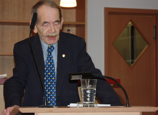 Anschließend kündigte Moderator Oliver Uwira den kulturellen Teil der Feier an. Walter Gräbner gab eine selbst verfasste amüsante Schach-Version von Goethes Erlkönig zum Besten, für die er begeisterten Beifall erntete. Sodann führte Thomas Zöller die Zuhörer in die Thematik Schach und Literatur ein und hielt einen interessanten Vortrag über Vladimir Nabokovs Roman „Lushins Verteidigung“.