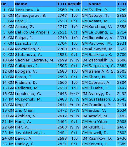 26.01.2012 - Ein Blick auf die Tabelle des laufenden Masters beim Tradewise Gibraltar Chess Festivals bringt noch nicht viel, denn es sind erst zwei Runden gespielt, und die meisten der zahlreichen Favoriten notieren daher bei 2/2. Aber nicht alle! Aus deutscher Sicht erfreulich ist, dass Peter Svidler nicht mehr zu den Hundertprozentigen gehört. Der World Cup-Sieger 2011 musste nämlich gegen unseren Artur Jussupow antreten und dieser schnappte sich einen halben Punkt. Dagegen nur einen halben Punkt erzielte Jan Gustafsson gegen Mariya Muzychuk, während Daniel Fridman und Niclas Huschenbeth jeweils voll punkteten. Damit ist Fridman der einzige Deutsche mit weißer Weste. Wirkliche Sensationen brachte die zweite von zehn Runden nicht. Erwähnenswert ist vielleicht das Remis von Fridmans Freundin Anna Zatonskih gegen Maxim Vachier-Lagrave. In der heutigen dritten Runde (Start 15 Uhr) trifft Fridman selbst an Brett 2 auf ELO-Favorit Michael Adams, während Jussupow, Gustafsson und Huschenbeth es jeweils mit gut schlagbarer Gegnerschaft zu tun bekommen.