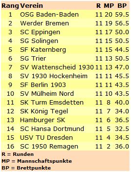 Schachbundesliga: Baden-Baden souverän, nur Bremen kann mithalten