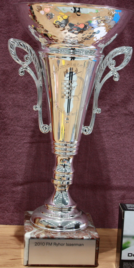 ...von Weltmeister Viswanathan Anand signierten Pokal (natürlich ist mittlerweile auch der Sieger von 2011 darauf verewigt!)