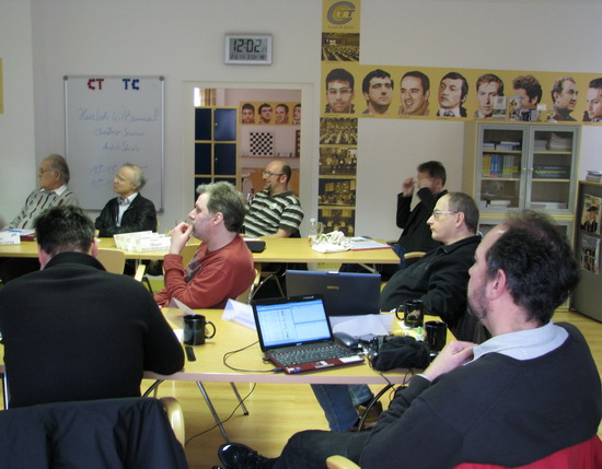 22.03.2012 - Mit den unterschiedlichsten Motivationen kamen die 16 Teilnehmer zum ChessBase-Seminar in Bad Sodens "B9" - Brunnenstraße Nr.9 - zusammen, um den Umgang mit den notwendigen Hilfsmitteln des aktiven Schachspielers zu verfeinern und zu vertiefen, zumindest aber vorübergehend auf den allerneuesten Stand der Technik zu bringen. Das "Urgestein" von der ChessBase GmbH, André Schulz, stellte Vergangenheit, Gegenwart und Zukunft der Technik an ganz konkreten Beispielen dar und ließ auch den praktischen Nutzeffekt nicht unberücksichtigt. Die Feedback-Bögen stellten mit einem Wert von 1.69 auf der Skala 1-5 einen sehr guten Wert dar. ChessBase-Seminare zu neuen Produkten und Technologien werden im CTTC folgen.