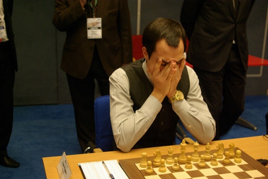 Volle Konzentration bei Ivan Popov am Spitzenbrett vor seinem Duell mit Fabiano Caruana