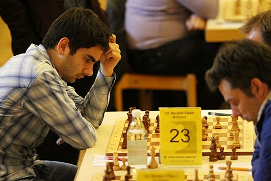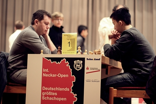07.04.2012 - 21 Spieler weisen nach dem zweiten Tag beim 16. Int. Neckar-Open mit drei Zählern die volle Punktzahl auf. Unter ihnen befindet sich mit Etienne Bacrot einer der Top Favoriten auf den Gesamtsieg. Nachdem Arkadij Naiditsch in der 2. Runde gegen den Lokalmatador Syang Zhou nicht über ein Remis hinauskam, übernahm der Franzose dessen Pole-Position am Spitzenbrett. Bacrot bekam es in der 3. Runde mit der deutschen Nachwuchshoffnung Dennis Wagner zu tun und wehrte den jugendlichen Ansturm souverän ab. Damit zeigt sich die Nr. 32 der Weltrangliste bislang in besserer Verfassung als im Vorjahr, als er nach enttäuschender Leistung noch nicht mal in die Preisränge kam. Bei den Damen wird Eva Moser ihrer Favoritenrolle bislang gerecht. Als einzige Frau im Feld liegt die Österreicherin bei drei Punkten. Die deutsche Nationalspielerin Melanie Ohme und einer Reihe weiterer Titelträgerinnen folgen mit zwei Punkten. Beim Int. Neckar-Open werden neun Runden Schweizer System gespielt. Vormittags geht es um 9:00 los, bevor um 15:00 - außer 9. Runde um 14:30 - die Nachmittagsrunde stattfindet. Die Partien an den ersten 16 Brettern werden live ins Internet übertragen.