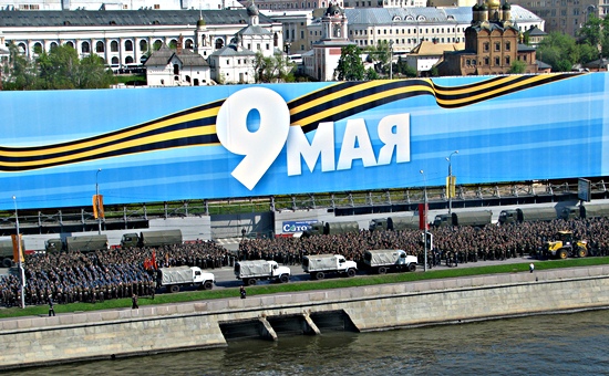Die Parade zum 9.Mai 2012 wird hier herunterrollen oder -marschieren - einer der historisch bedeutendsten Blicke!